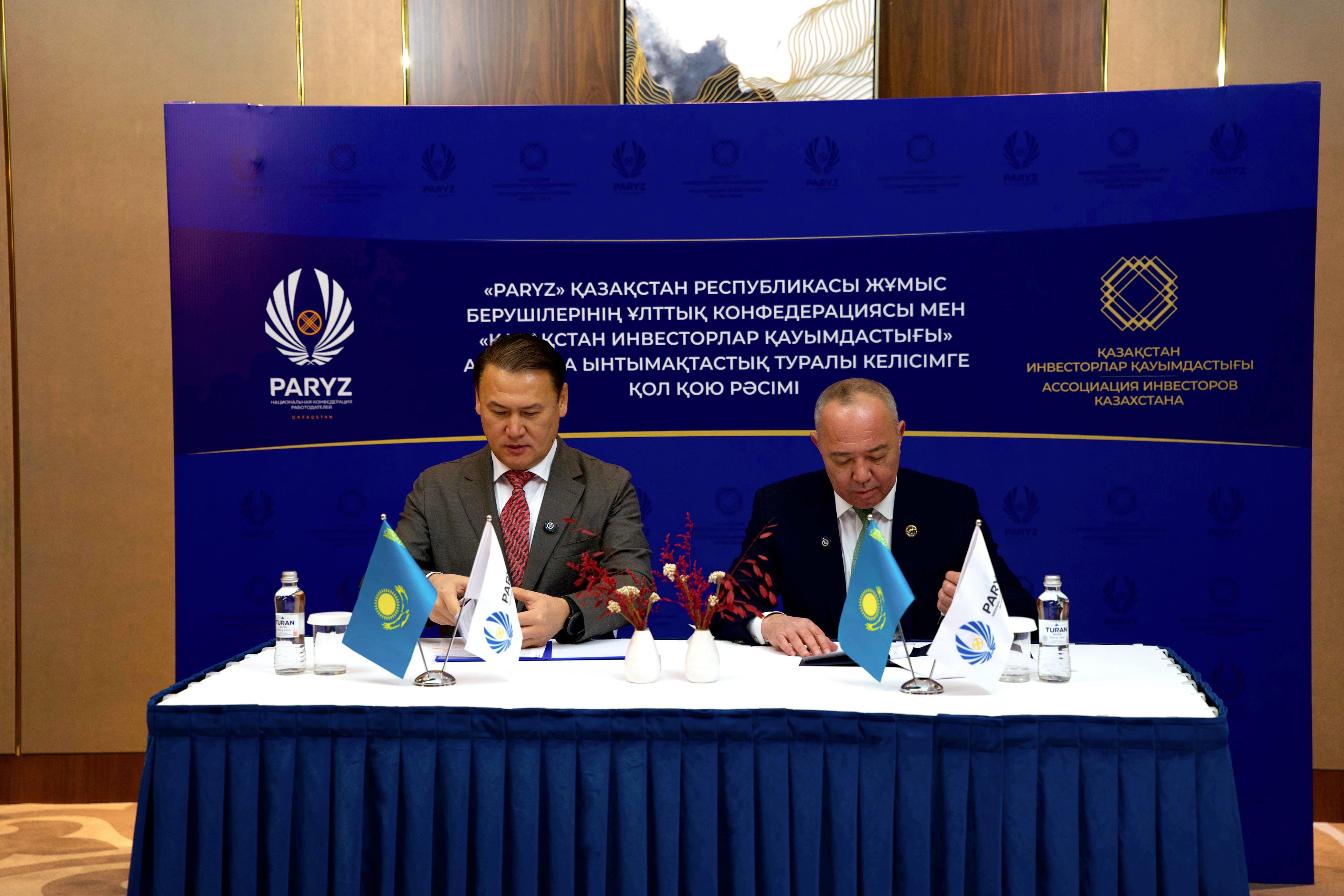 Ассоциация инвесторов Казахстана и Национальная Конфедерация работодателей РК «PARYZ» дали старт сотрудничеству